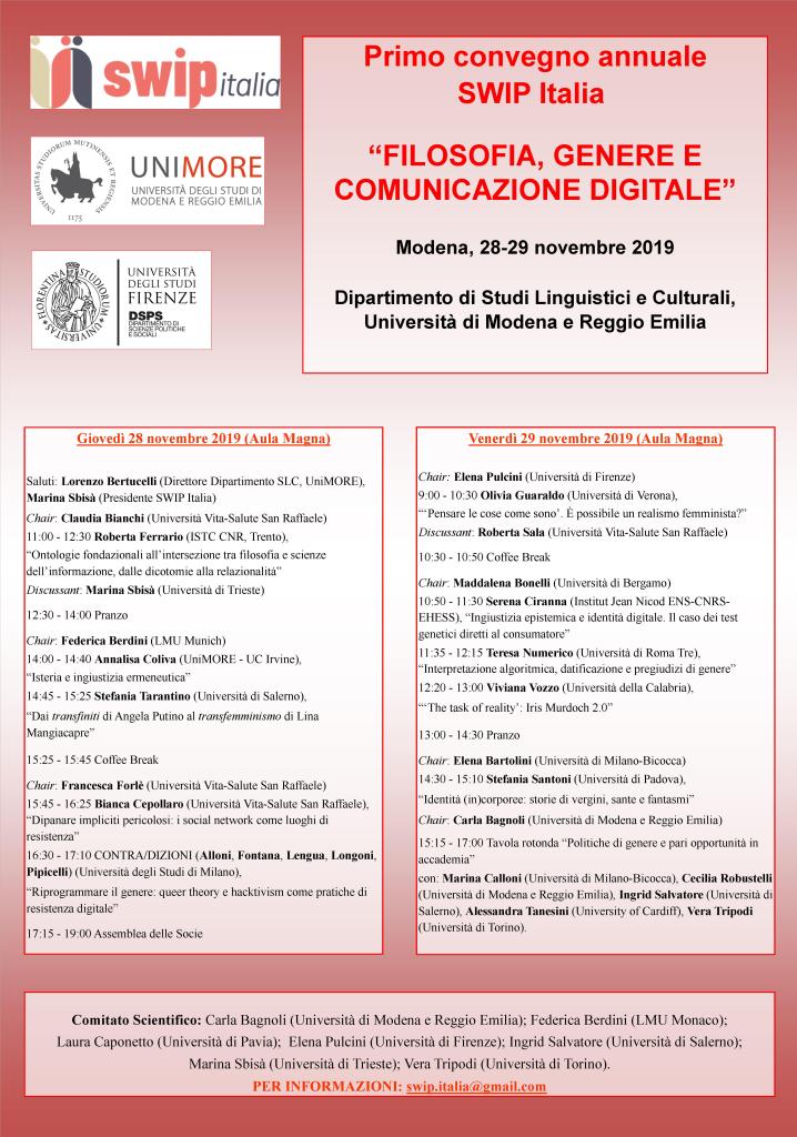 Saluti: Lorenzo Bertucelli (Direttore Dipartimento SLC, UniMORE), Marina Sbisà (Presidente SWIP Italia)