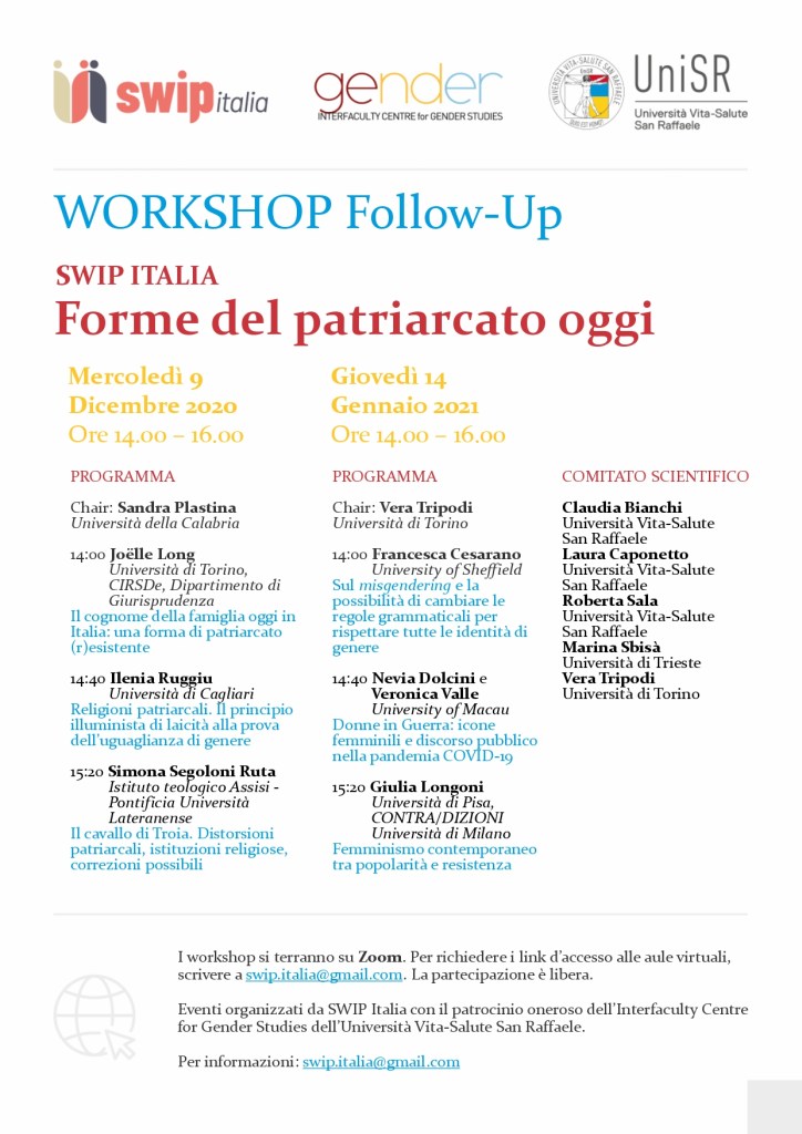 Il workshop è organizzato da SWIP Italia con il patrocinio oneroso dell’Interfaculty Centre for Gender Studies dell’Università Vita-Salute San Raffaele.