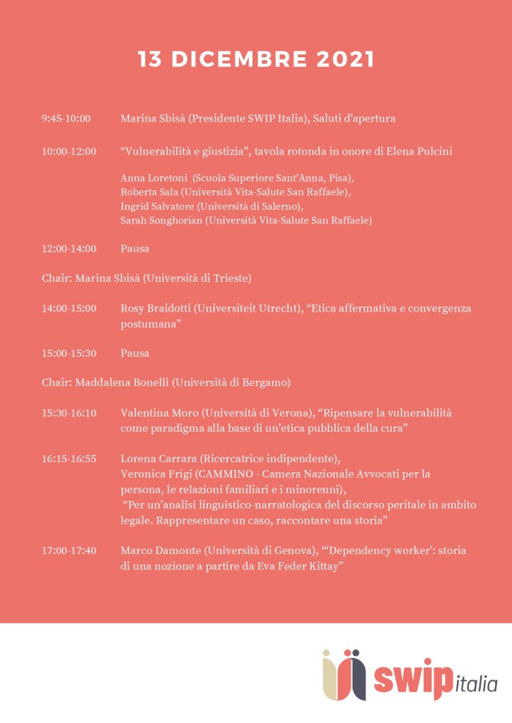 17:00-17:40 Marco Damonte (Università di Genova), “‘Dependency worker’: storia di una nozione a partire da Eva Feder Kittay”