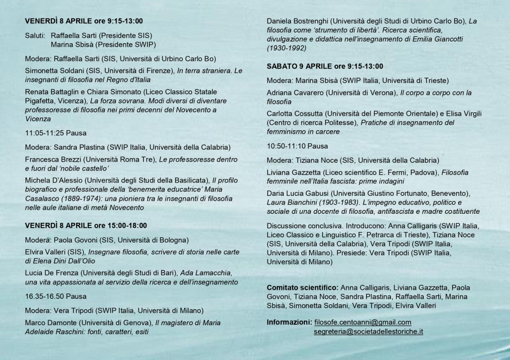 9.30 Simonetta Soldani (SIS, Università di Firenze), “In terra straniera. Le insegnanti di filosofia nel Regno d’Italia”